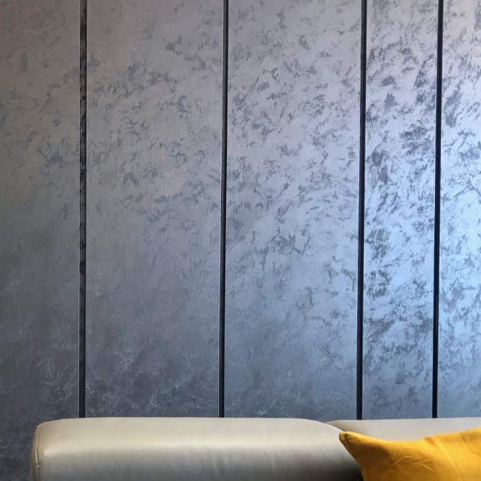 A decorative coating for interiors with soft metallic charges that creates high-end visual effects and a stunning game of light and shades. Products are water-based, with a wide and comprehensive rang of metallic paints to pearlescent plasters, permits to achieve prestigious, velvety chromatic effects and visual and tactile sensations, perfectly aligned with the cutting-edge trends in the decoration of modern interiors